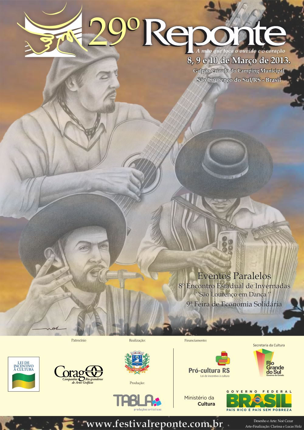 Uma nova data será informada em breve, de forma que não coincida com as já agendadas por outros festivais. É possível que a 29ª edição seja realizada no mês de maio. Na Linha Campeira foram triadas 325 Obras sendo 298 para do Reponte e 27 do Pérola em Canto e na Linha Manifestação Regional foram triadas 398 sendo 361 do Reponte e 37 do Pérola em Canto, totalizando 723 obras.