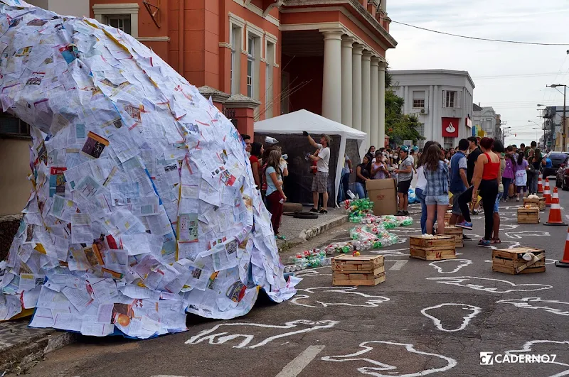 Uma intervenção urbana chamou a atenção no Centro da cidade na manhã desta terça-feira (11), e seguirá durante a tarde na frente da Escola Estadual XV de Novembro e em parte da Rua Duque de Caxias. Denominado "Manifest Art", a gigantesca obra de arte produzida pelos alunos da Escola utiliza materiais em todos os níveis, para mostrar o que produzimos de lixo.