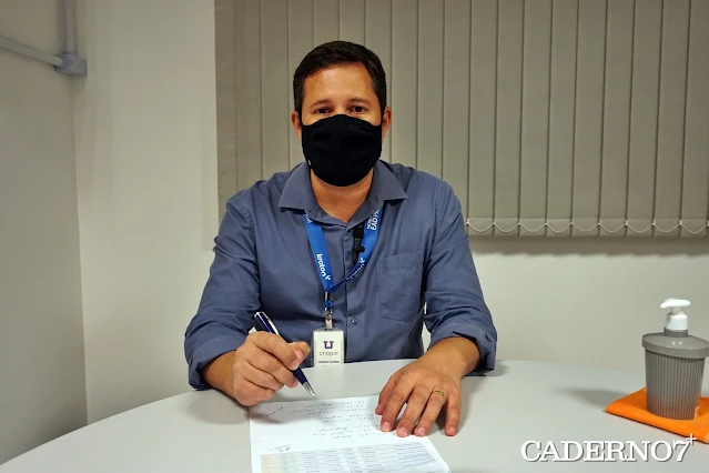 | Luciano Cardozo, gestor do Polo local da Unopar, informa que instituição oferece 63 bolsas integrais para seis cursos em São Gabriel (foto Marcelo Ribeiro/portal Caderno7) |