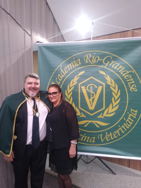 | Pedro Jaime Simon Ferraz junto com sua irmã, Jany Ferraz, na sua posse como imortal da Academia Rio-Grandense de Medicina Veterinária na última sexta-feira em Porto Alegre (fotos divulgação) |